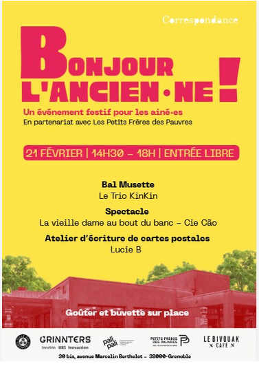 17h-17h30 : La Vieille Dame au Bout du Banc par la cie Cão Au pied d’un banc vide, des pigeons attendent leurs miettes journalières, ils sont rejoints par une vieille dame au chapeau rouge. Entre deux soupirs, elle se laisse aller aux confidences de son quotidien, à ses fantasmes, aux souvenirs qu’elle enjolive à sa manière.